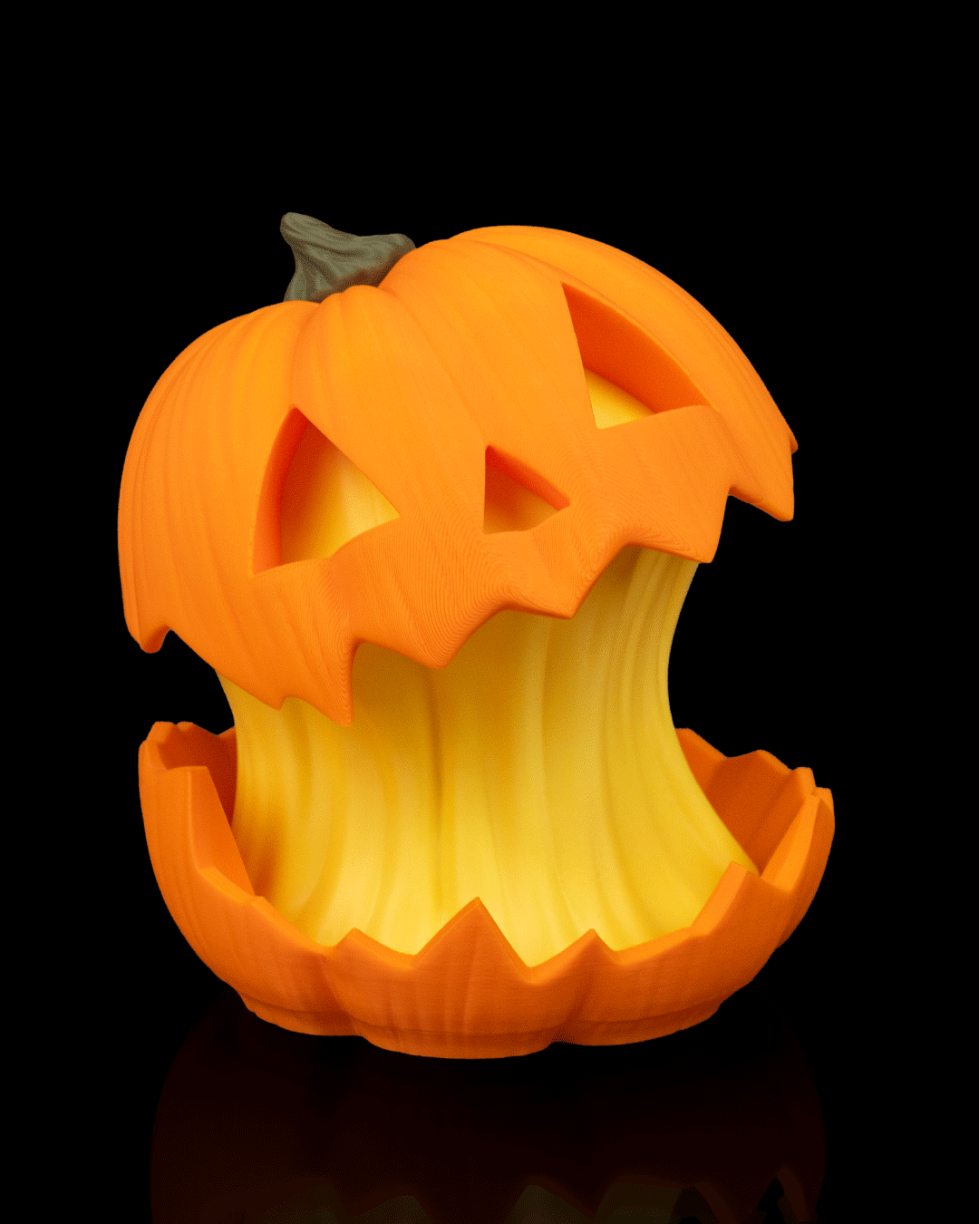 A gourd that oozes light from within, spilling a gooey, ghostly glow.